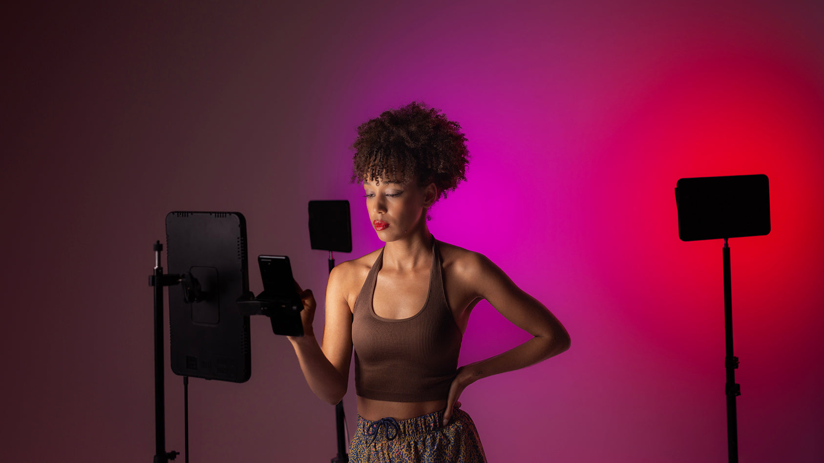 Slite's 55w panel produces highly accurate, flattering light. Using Slite's app you've got control over your content, even if you're the star of the show. Pair that with RGB LEDs, Slite places 16 million colorful possibilities in your hands. And with Slite able to run off a USB-C power bank, you can create like a pro, on-the-go.